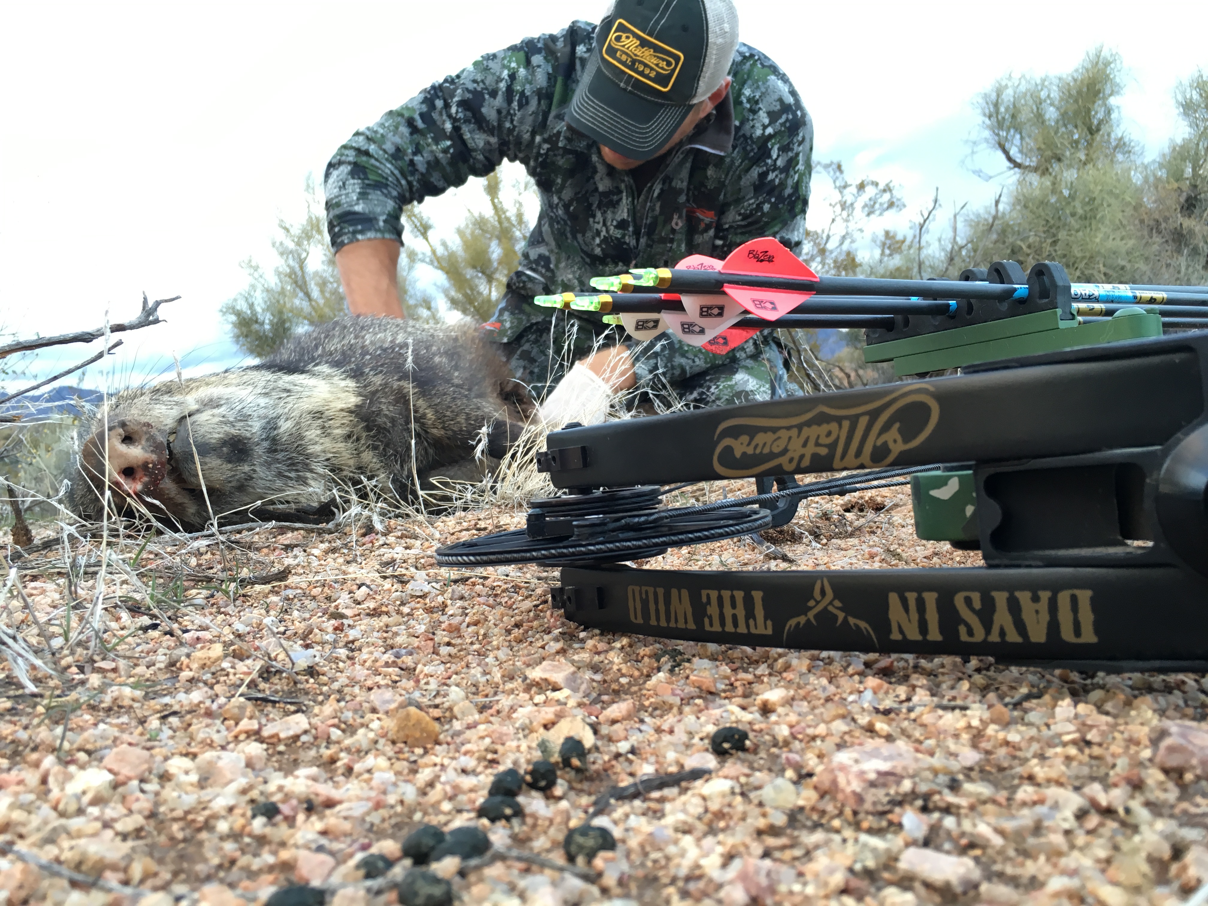 Javelina Hunting In Arizona with Days in The Wild Outfitters offers Javelina hunts in all three seasons Archery, Hand Gun/Archery/Muzzle loader (HAM hunt) and Rifle seasons. Our hunts are typically 3 day guided only or Fully Outfitted Hunts but we can add days if needed. We have 100% shot opportunity on these hunts in all seasons. We specialize in tradition archery hunts slipping our clients often within 10 yards of their target. a 3 day spot and stalk guided only hunt is $1400 $1200 and Fully outfitted is $1950 $1675. There are still left over tags that are first come first serve in the units we hunt. Can be combined with 1- 3day predator hunts for $400 $350 a day. Note Special pricing is for specific dates and specific units.